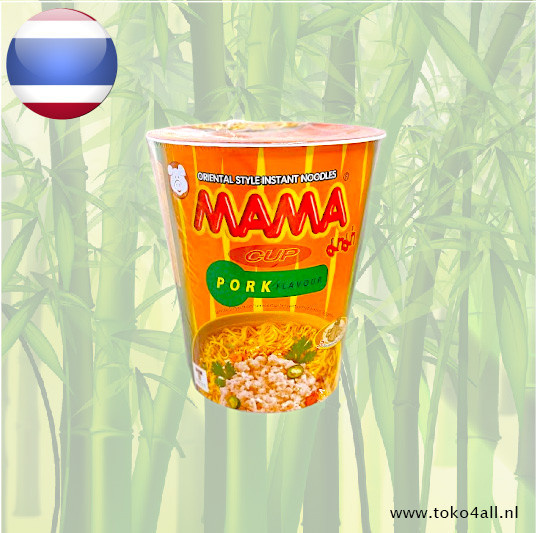 Mama Cup Noedels met varkenssmaak is een snel en gemakkelijk te bereiden instant noedelmaaltijd, geliefd om zijn rijke en hartige smaak.